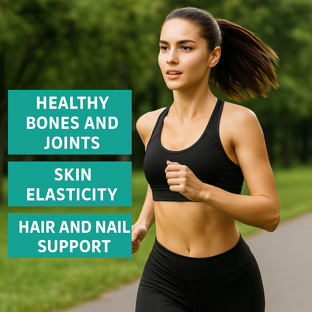 Our premium collagen formula is crafted to support your body’s foundation — from strong joints and bones to glowing skin and resilient hair. Trusted by thousands, powered by nature, and made for your daily routine.